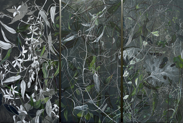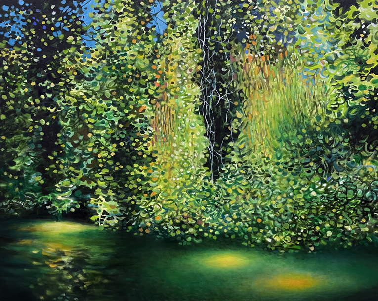 Paintings exploring different ways of seeing and experiencing the landscape over time and through colour, with a focus on trees and the elements.