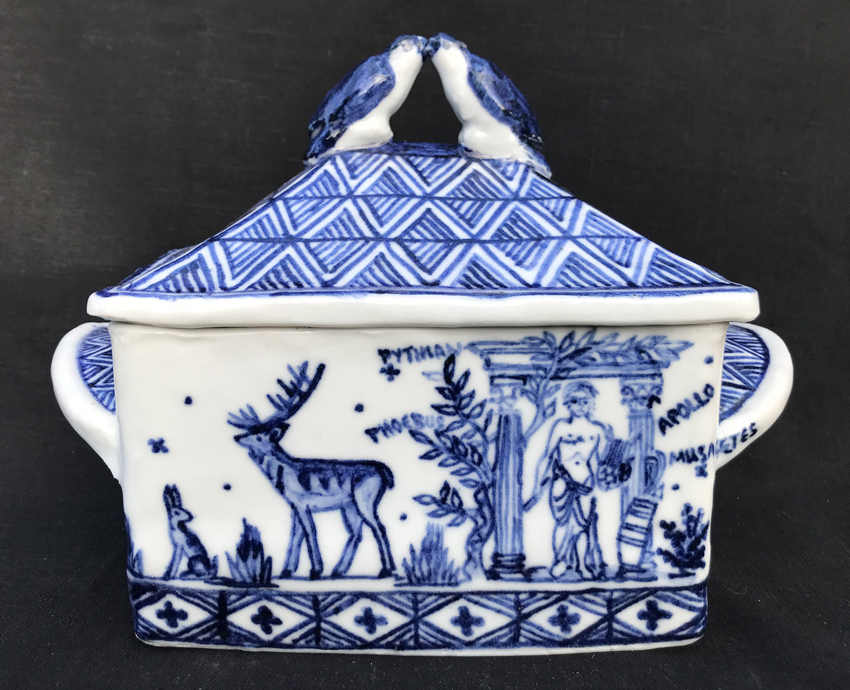 I make hand painted, underglaze blue porcelain bowls, vases, boxes, jugs and mugs, some enamelled, with birds, animals and sea creatures.
