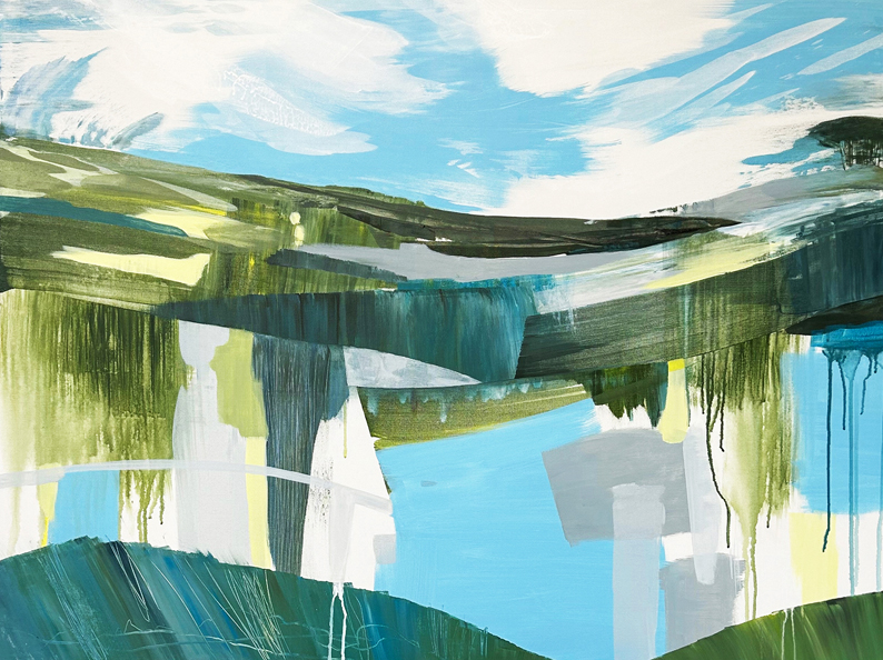 Semi-abstract acrylic landscapes inspired by surrounding countryside and beyond of the exterior/interior/spiritual world.